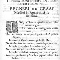 - Regneri de Graaf De mulierum organis generationi inservientibus tractatus novus : demonstrans tam homines & animalia caetera omnia, quae vivipara dicuntur, haud minus quàm ovipara ab ovo originem ducere : ad Cosmum III, magnum Etruriae ducem