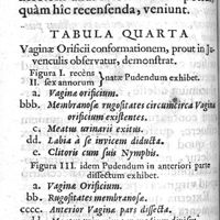 0093 - Page 62 - Tabula quarta. Vaginae Orificii conformationem, prout in Juvenculis observatur, demonstrat