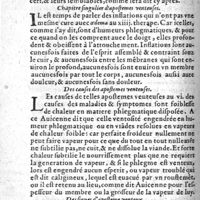 0130 - Page sans numérotation - Chapitre singulier d'apostemes venteuses / Des causes des apostemes venteuses / Des signes d'aposteme venteux