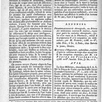 0096 - Page 96 - N°24 / Médecine-Pratique Recherches sur l'origine & le siège du scrobut & des fièvres putrides, ouvrage traduit de l'anglois de M. Milman par M. Vigaroux de Montagut / Annonces [D. Macride, Introduction méthodique à la théorie & à la pratique de la médecine] / [mémoires] Avis