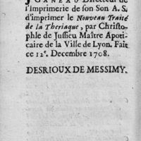 0174 - Page 156 - Discours prononcé en présence de Messieurs les Prvôts des Marchand et Echevins, et du Collège des Medecins de la Ville de Lyon, pour la composition de la Theriaque…