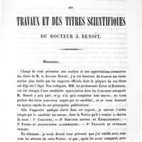 Analyse et appréciation des travaux et titres scientifiques du Dr Benoît au 10 mars 1853,...