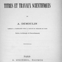 - Exposé des titres et travaux scienfiques de A. Demoulin candidat à l'agrégation pour la Faculté de médecine de Paris
