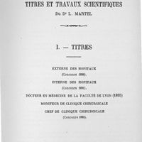 0013 - Page 13 - II. Travaux scientifiques. B. Communications et présentations. 2. Du tissu para-fongueux. - Sa structure. - Sa virulence. - Son utilisation dans la méthode des opérations conservatrices / 3. Tumeur kystique de l'ovaire et tuberculose pleuro-péritonéale / 4. Hernie inguinale étranglée et hernie propéritonéale avec torsion du mésentère
