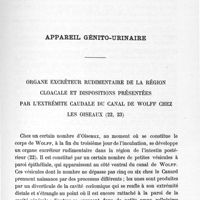 0043 - Page 43 - Appareil génito-urinaire. Organe excréteur rudimentaire de la région cloacale et dispositions présentées par l'extrémité caudale du canal de Wolff chez les oiseaux0043 - Page 43 - Appareil génito-urinaire. Organe excréteur rudimentaire de la région cloacale et dispositions présentées par l'extrémité caudale du canal de Wolff chez les oiseaux