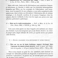 0045 - Page 47 - Troisième partie. Résumé analytique des principaux travaux énumérés dans la deuxième partie. Premier groupe. Travaux divers - Membres - Système nerveux. I. Observations et travaux divers. C. Kystes hydatiques intra-musculaires et autres tumeurs / D. Observations diverses