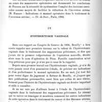 0153 - Page 155 - Troisième partie. Résumé analytique des principaux travaux énumérés dans la deuxième partie. Troisième groupe. Gynécologie et chirurgie abdominale. IV. Hystérectomie vaginale. D. L'hystérectomie vaginale dans le traitement du cancer de l'utérus / E. L'hystérectomie vaginale ; (Quelques détails sur sa technique et ses complications.)
