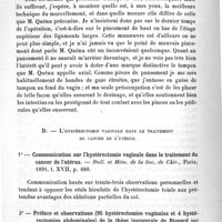 0148 - Page 150 - Troisième partie. Résumé analytique des principaux travaux énumérés dans la deuxième partie. Troisième groupe. Gynécologie et chirurgie abdominale. IV. Hystérectomie vaginale. C. L'hystérectomie vaginale dans le traitement des fibromes / D. L'hystérectomie vaginale dans le traitement du cancer de l'utérus