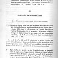 0178 - Page 180 - Troisième partie. Résumé analytique des principaux travaux énumérés dans la deuxième partie. Troisième groupe. Gynécologie et chirurgie abdominale. VI. Chirurgie et puerpéralité. A. Intervention chirurgicale pendant la grossesse / B. Interventions chirurgicales au moment du travail