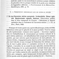 0181 - Page 183 - Troisième partie. Résumé analytique des principaux travaux énumérés dans la deuxième partie. Troisième groupe. Gynécologie et chirurgie abdominale. VI. Chirurgie et puerpéralité. B. Interventions chirurgicales au moment du travail / C. Intervention chirurgicale dans les suites de couches
