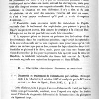 0182 - Page 184 - Troisième partie. Résumé analytique des principaux travaux énumérés dans la deuxième partie. Troisième groupe. Gynécologie et chirurgie abdominale. VI. Chirurgie et puerpéralité. C. Intervention chirurgicale dans les suites de couches / D. Hématocèle péri-utérine. Grossesse extra-utérine
