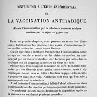 0005 - Page 5 - Publications scientifiques. Contribution à l'étude expérimentale de la vaccination antirabique (Essais d'immunisation par la substance nerveuse rabique modifiée par le séjour en glycérine)