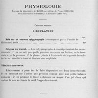 0006 - Page 6 - Deuxième partie. Physiologie. Travaux du laboratoire de Marey, au collège de France (1896-1904) et du laboratoire de Dastre à la Sorbonne (1904-1917). Chapitre premier. Circulation