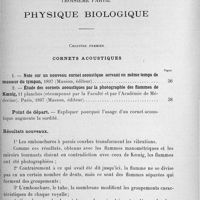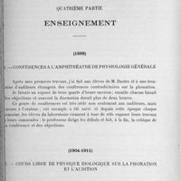 0028 - Page 28 - Quatrième partie. Enseignement. (1898) 1. Conférences à l'amphithéâtre de physiologie générale / (1904-1911) 2. Cours libre de physique biologique sur la phonation et l'audition