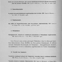0078 - Page 72 - VI. Physiologie. B. Immunité et hérédité. Expérimentation. 1. Modification de résistance des animaux par l'hyperthermie / 2. Pancréatectomie / 3. Néphrectomie / 4. Hématolyse / 5. Toxicité des humeurs