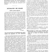0476 - Page 452 - Actualités médicales. Le hile pulmonaire, point de départ fréquent des reviviscences de la tuberculose à l'adolescence et chez l'adulte / La cholestérinémie dans la tuberculose pulmonaire / Action centrale et réflexe de l'adrénaline et de la pression circulatoire sur la fréquence du coeur