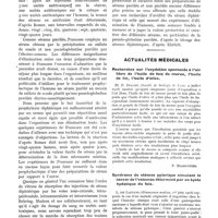 0048 - Page 36 - Actualités médicales. La réanimation du coeur et de la respiration dans les syncopes anesthésiques / Grossesse, tuberculose pulmonaire et pneumothorax artificiel / La cholestérinémie dans les affections vasculaires avec hypertension / Le traitement de l'ascite de la cirrhose du foie par le chlorure de calcium / Mécanisme de la mort par pénétration d'air dans les veines