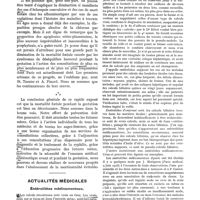 0139 - Page 127 - Actualités médicales. Thrombo-angéite oblitérante et traitement / Pyrétothérapie réglée dans la paralysie générale par l'injection intraveineuse de vaccin antichancrelleux / Infection et troubles mentaux / L'hypotension artérielle permanente d'allure idiopathique / Physiologie du rectum