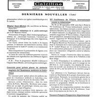 0824 - Page sans numérotation - Dernières nouvelles. Journées Napolitaines pour la VIe Conférence internationale contre la tuberculose / Ecole de Puériculture / Ecole Théophile Roussel / Concours d'aide-interne à la maison de Saint-Lazare