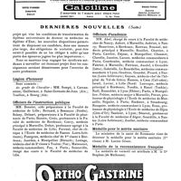 0871 - Page sans numérotation - Dernières nouvelles. Service de santé militaire / Cinquantenaire du Concours médical / Légion d'honneur / Officier de l'Instruction publique / Officiers d'Académie / Dispensaire d'hygiène sociale et de préservation antituberculeuse