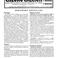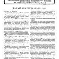 0820 - Page sans numérotation - Dernières nouvelles. Ecole de médecine de Marseille / Ecole de médecine de Grenoble / IXe Congrès des médecins et chirurgiens des hôpitaux / Asile de Moisselles / Légion d'honneur / Officiers d'Académie