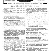 0882 - Page sans numérotation - Dernières nouvelles. Hôpitaux de Paris / Faculté de médecine de Montpellier / Faculté de pharmacie de Paris / Faculté de médecine de Lille / Faculté de pharmacie de Montpellier / Ecole de médecine de Clermond-Ferrand / Ecole de médecine de Dijon / Ecole de médecine de Nantes / École de médecine de Marseille / Hôpitaux de Bordeaux / Hôpitaux de Lille
