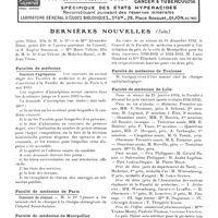 0857 - Page sans numérotation - Dernières nouvelles. Faculté de médecine de Bordeaux / Faculté de médecine de Nancy / Faculté de médecine d'Aix-Marseille / Faculté de médecine de Genève / Ecole de médecine de Clermont-Ferrand / Asile Sainte-Anne / Hôpital Notre-Dame de Bon-Secours / Hôpital de la marine