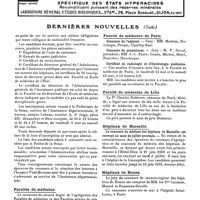 0834 - Page sans numérotation - Dernières nouvelles. Hôpital Laënnec / Hôpital Bichat / Policlinique du Boulevard Ney / Hôpital Broussais
