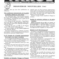 0794 - Page sans numérotation - Dernières nouvelles. Congrès médical de psychothérapie / Légion d'honneur / Salon de l'enfance / Conférences sur l'épidémiologie et l'hygiène en pays chinois / Gala des étudiants en médecine / Fédération nationale des médecins du front