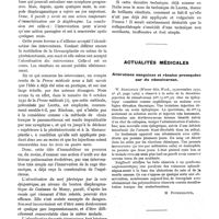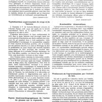 0611 - Page 375 - Actualités médicales. Le traitement de la neurosyphilis par la malaria / Typhobacillose expérimentale du singe et de l'homme / Signes éléctrocardiographiques de l'action du glucose sur le myocarde / Arachnoïdite chiasmatique / Traitement de l'agranulocytose par l'extrait de foie