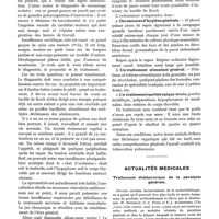 0063 - Page 25 - Le traitement du diabète par le praticien par Pierre Mauriac. II. - Si le but idéal du traitement du diabète est la disparition complète du sucre des urines, en pratique, au cours de la cure par l'insuline, il peut être dangereux de le poursuivre / III. - Le régime du diabétique, dont l'importance est capitale, peut être réglé par le médecin praticien avec un brin de science et beaucoup de bon sens