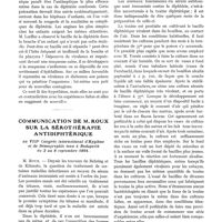 0854 - Page 522 - Contribution à l'étude de la diphtérie, par E. Roux et A. Yersin. IV. - Le poison diphtéritique / Communication de M. Roux sur la sérothérapie antidiphtérique, au VIIIe Congrès international d'Hygiène et de Démographie tenu à Budapesth du 2 au 8 septembre 1894