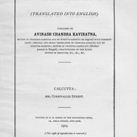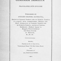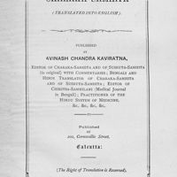 - Charaka-Samhita : [the greatest scientific work of ancient Indian wisdom] -- translated in to english and published by Kaviraj Avinash Chandra Kaviratna ... ; [Parts XXXIX- LI] published by Pareshnath Sarma, son of Kaviraj Avinash Chandra Kaviratna