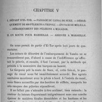 0037 - Page 37 - Chapitre V / I. Départ d'El-Tor. - Passage du canal de Suez. - Débarquement de 400 pélerins à Tripoli. - En face de Mélilla. - Débarquement des pélerins à Mogador. - II.En route pour Marseille.- Arrivée à Marseille