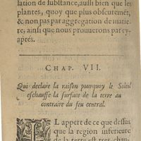 0286 - Page 262 - Qui declare la raison pourquoy le soleil eschauffe la surface de la terre ou contraire du feu central. Chap. VII