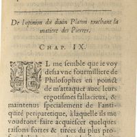 0309 - Page 283 - De l'opinion du diuin Platon touchant la matiere des pierres. Chap. IX