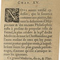 0335 - Page 309 - Qui definit la semence en general, suiuant Hippocrate, pour prouuer qu'elle conuient aux pierres & pierreries. Chap. XI