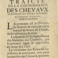 0009 - Page 1 - De la cognoissance et iugement des cheueaux. Premiere partie. Du iugement & esperance du poulain