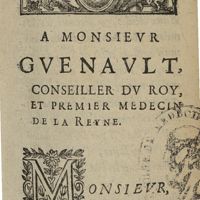 0007 - Page sans numérotation - A Monsieur Guenault, Conseiller du Roy, et Premier Medecin de la Reyne