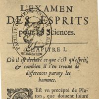 - L'examen des esprits pour les sciences où se monstrent les différences d'Esprits...augmenté de la derniere impression d'Espagne