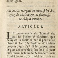 0723 - Page 639 - Par quelles marques on connoist les degrez de chaleur & de secheresse de châque homme / Article I