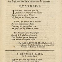 0027 - Page sans numérotation - A Monsieur Fabre, sur son Liure des Eaux minerales du Viuarez. Quatrains