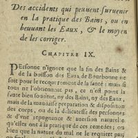 0058 - Page 54 - Des accidens qui peuuent suruenir en la pratique des bains, ou en beuuant les eaux, & les moyen de les corriger. Chapitre IX