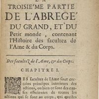 0029 - Page 1 - La premiere partie de l'Abregé du grand, et du petit Monde, traitant de la diverse nature & difference des Estres, & des formes naturelles. De la division des Estres qui sont en la nature. Chapitre I