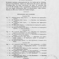 0127 - Page 125 - Description des organes considérés comme pycnides. Meliola ganglifera Kalchbr. / M. cladotricha Lév. / M. penicilliformis Gaill. / M. ambigua Pat. et Gaill. / M. Desmodii Karst. et Roum.