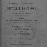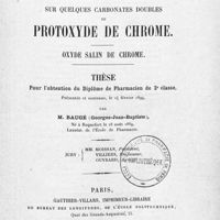 - Sur quelques carbonates doubles du protoxyde de chrome. Oxyde salin de chrome. Thèse pour l'obtention du diplôme de pharmacien de 2e classe.
