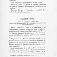 0009 - Page 3 - Première partie. Action de quelques carbonates sur l'acétate chromeux. Propriétés des composés qui en résultent