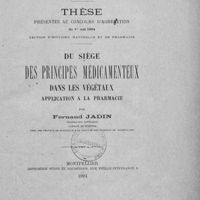 - Du siège des principes médicamenteux dans les végétaux : application à la pharmacie
