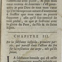 0057 - Page 1 - Le barbier du medecin, ou les fleurs d'Hyppocrate dans lequel sont exprimées les trois substances naturelles, avec la pratique de medecine, selon ledit Hypocrate / Chapitre Premier