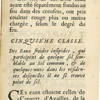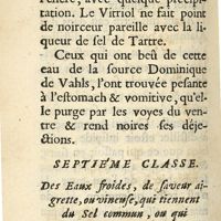 0140 - Page 136 - Septième classe. Des eaux froides, d saveur aigrette, ou vineuse, qui tiennent du sel commun, ou qui n'ont point de sel